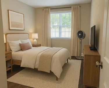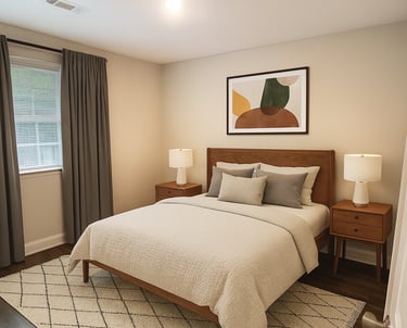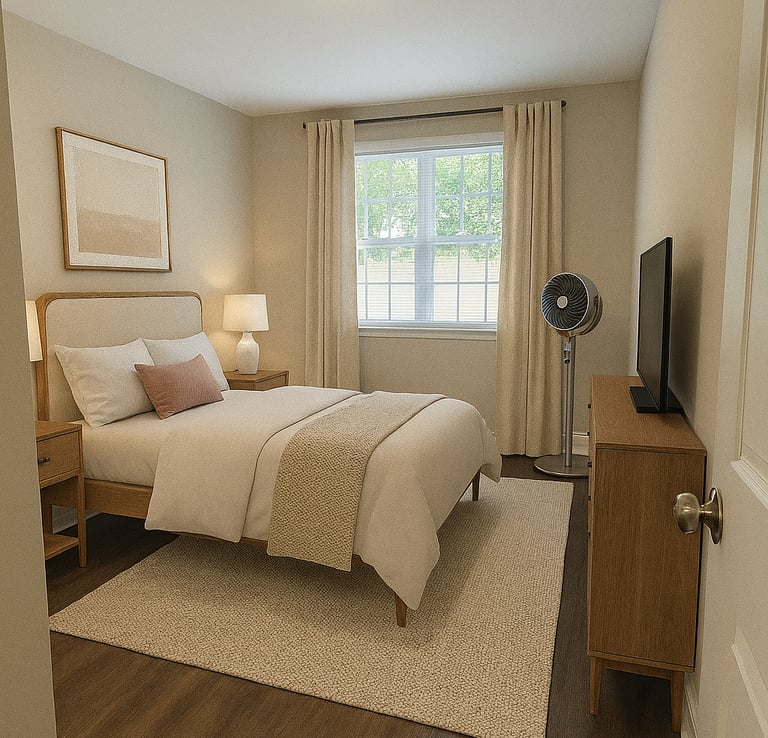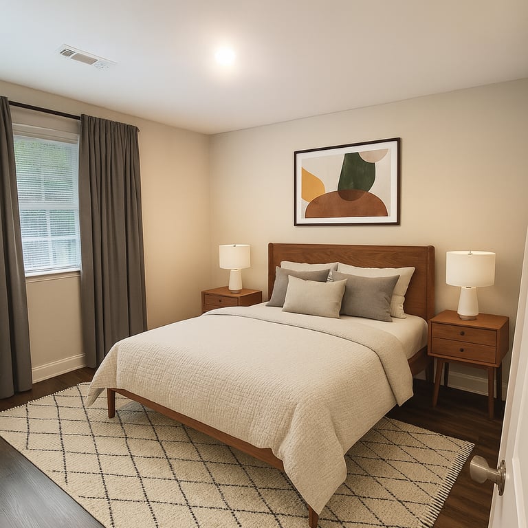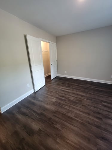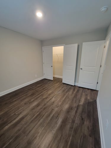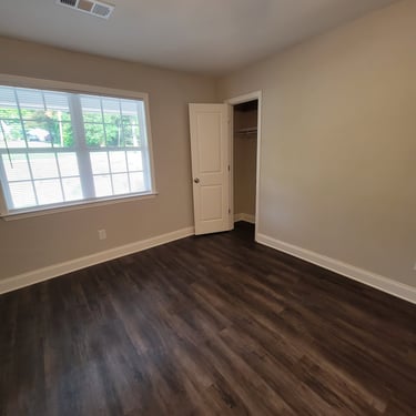 Example rear bedroom layout w/ closet doors on the right out of view with room for dresser on facing wall