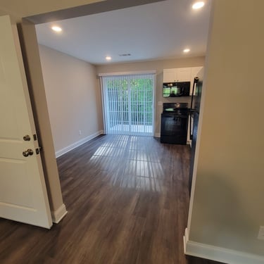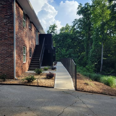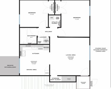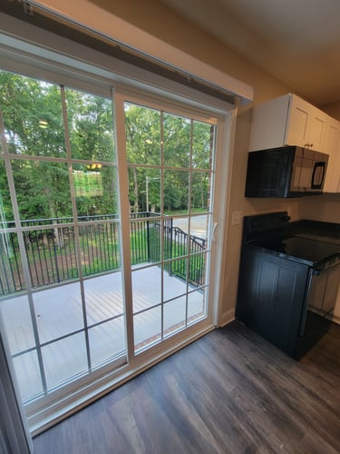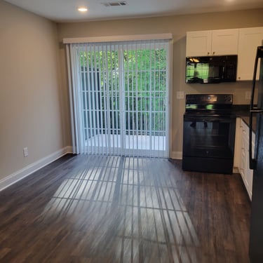 Large living area with lots of light, spacious kitchen, and dining with sliding door to private patio/balcony, and bedrooms have generous wall space for furniture with large reach-in closets. All units feature LVP flooring throughout. Covered front entrance and greenery provide a welcoming entry.